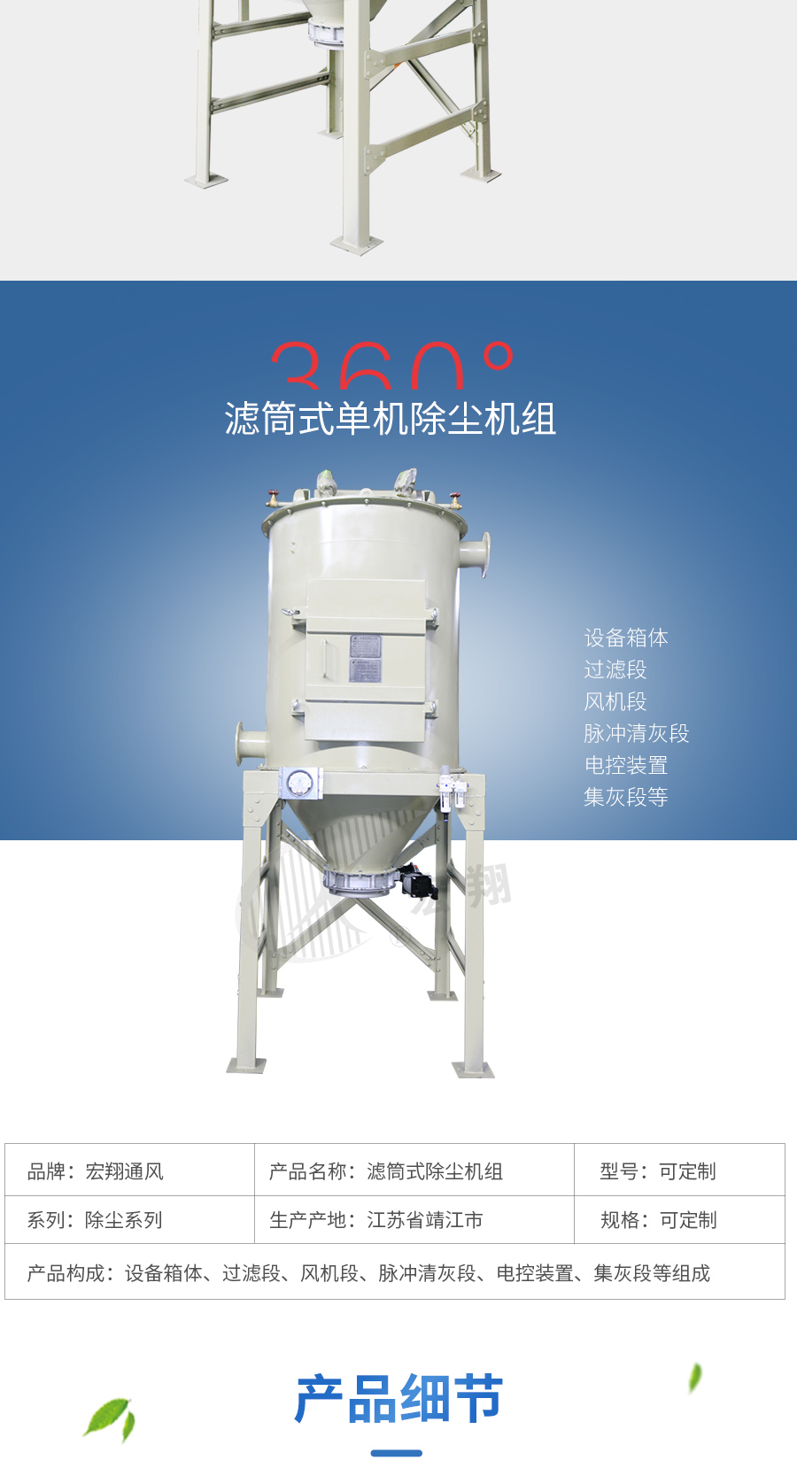 濾筒式除塵機組在系統(tǒng)主風機的作用下,含塵氣體從除塵器下部的進風口進入除塵器底部的氣箱內(nèi)進行含塵氣體的預處理,然后從底部進入到上箱體的各除塵室內(nèi);粉塵吸附在濾筒的外表面上,過濾后的干凈氣體透過筒進入上箱體的凈氣腔并匯集至出風口排出。 該濾筒式除塵器的清灰過程是先切斷某一室的凈氣出口通道,使該室處于氣流靜止狀態(tài),然后進行壓縮空氣脈沖反吹清灰,清灰后再經(jīng)若干秒鐘時間的自然沉降后,再打開該室的凈氣出口通道,不但清灰徹底、還避免了噴吹清灰產(chǎn)生的粉塵二次吸附,如此逐室循環(huán)清灰。