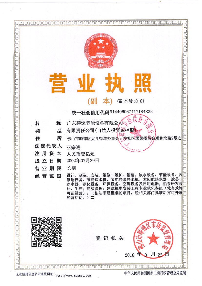 廣東碧淶節能設備有限公司 地址:廣東省佛山市順德五沙工業園順和北路2號之一