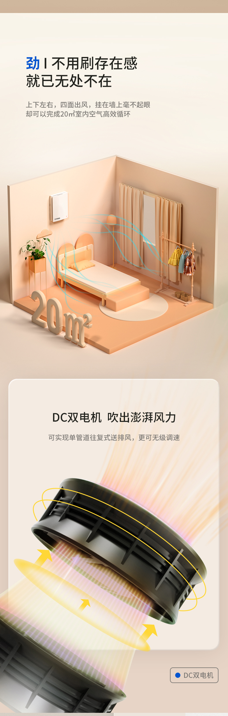 優(yōu)勢:恒溫恒氧、高效除霾、靜音舒適、A+節(jié)能認證、APP智能控制、防風防雨、無級調(diào)速、簡致外觀。