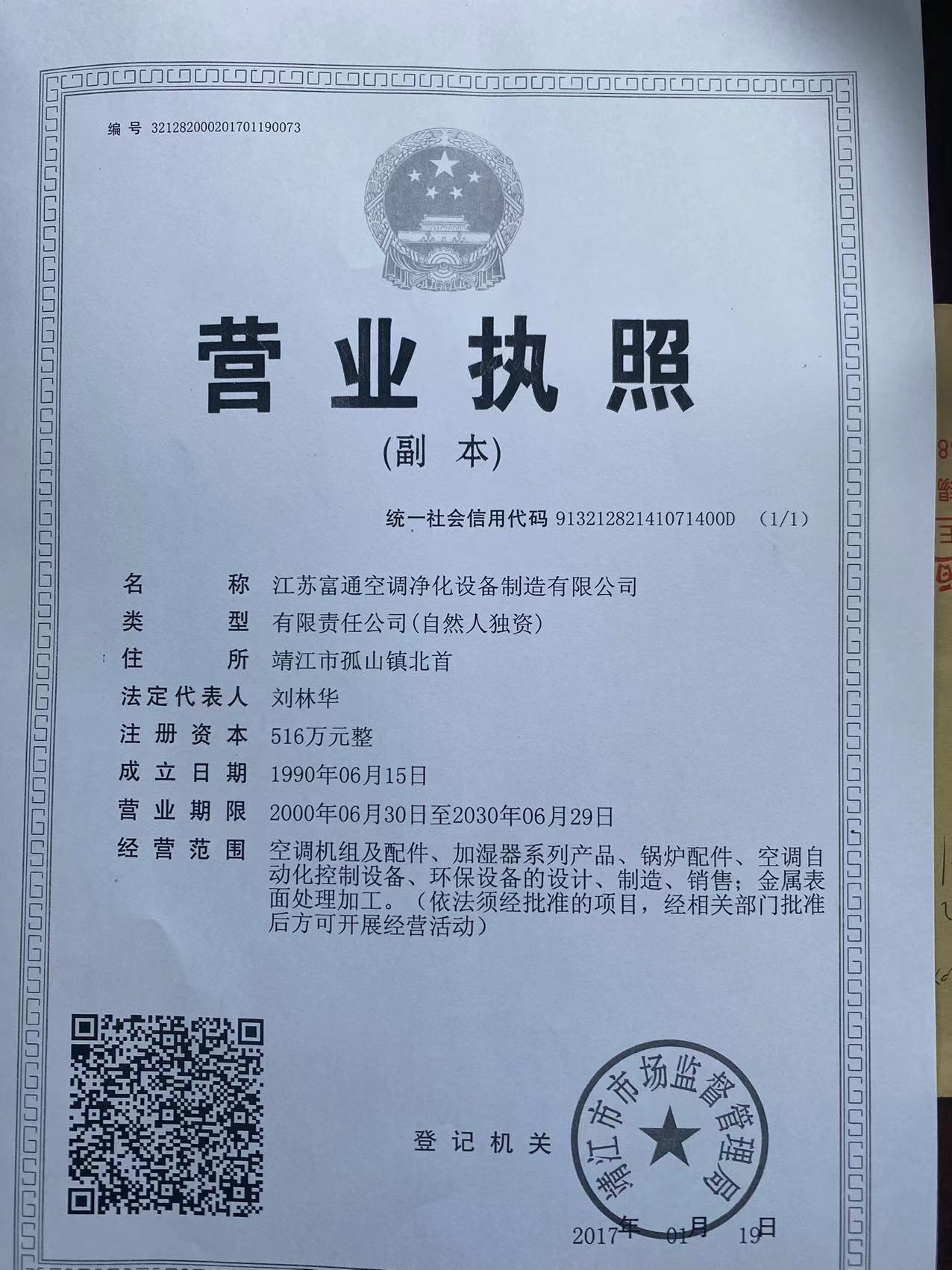 江蘇富通空調凈化設備制造有限公司 地址:中國江蘇省泰州市靖江市孤山鎮通太路9號
