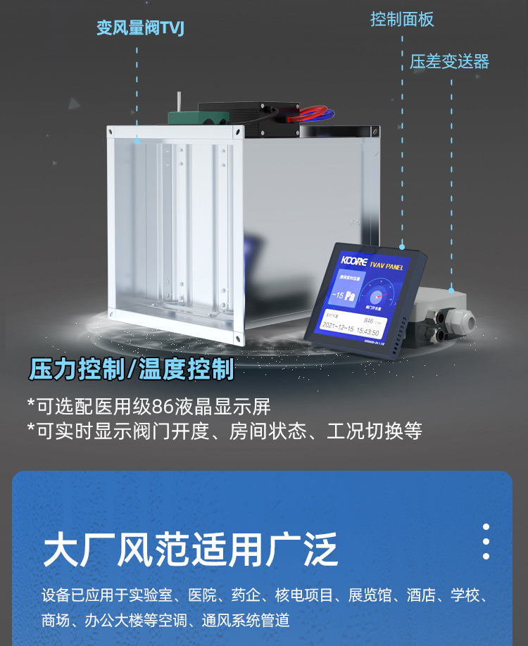 主營產品: 風量閥、變風量閥、密閉閥、防火閥、風量調節(jié)閥、風口、風閥、風機系列產品和中央空調末端產品