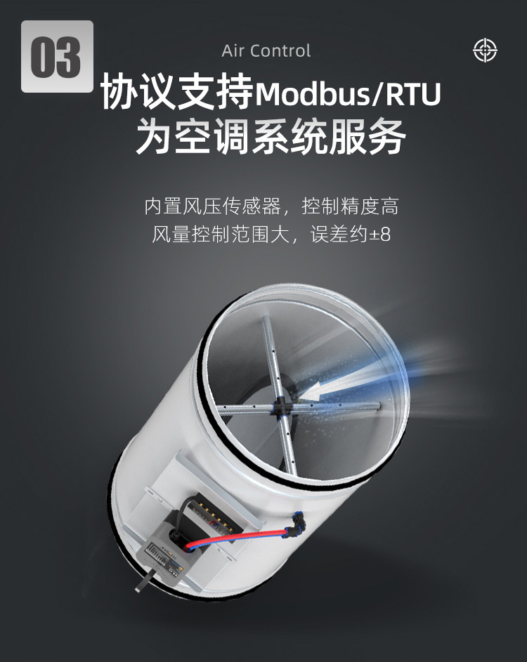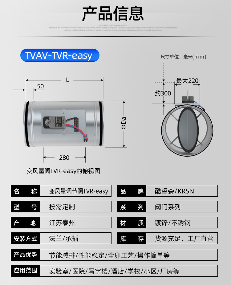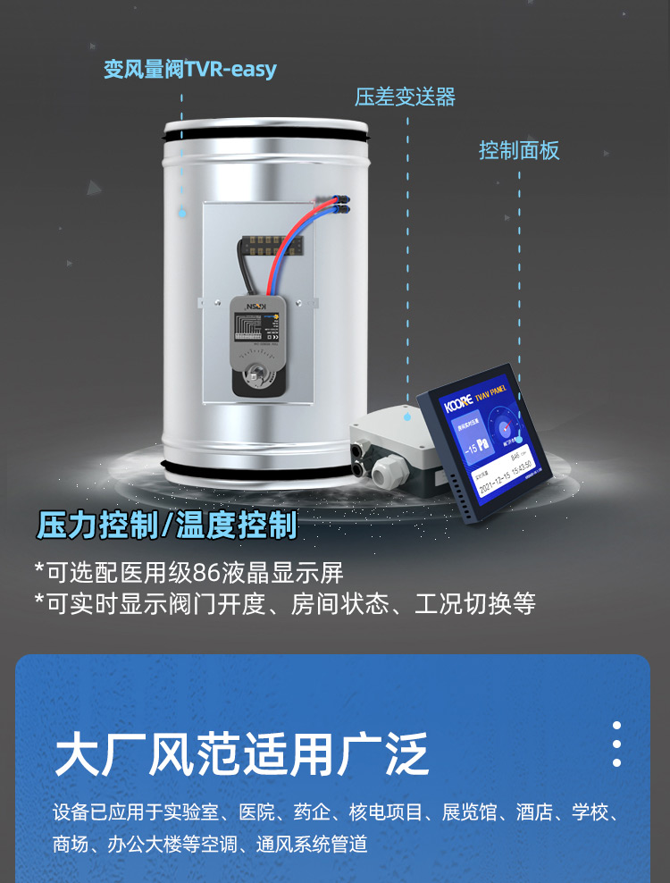 TVAV-TVR-easy:圓形變風量調節閥,用于送風或排風,可氣密關閉 酷睿森變風量創新解決方案 簡單:根據風管的公稱尺寸選項 控制:四種控制模式選擇