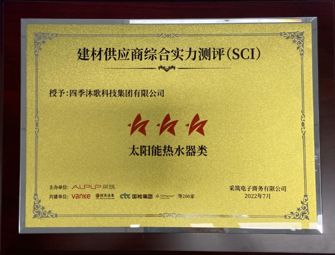 7月5日,第八屆全球深商大會暨采筑聯合者大會4在深圳順利召開,現場重磅發布2022供應商綜合指數SCI測評結果,四季沐歌是太陽能熱水器品類唯一一家榮獲“三星供應商”獎項!